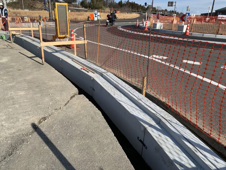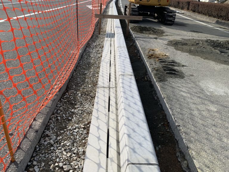 工事概要:JR安中榛名駅(安中市)の「安中榛名駅入口交差点」で社会実験中の信号機のない環状交差点「ラウンドアバウト」に管渠型側溝として採用された【フロンティア側溝M】ラウンドアバウトの正式導入は県内初。