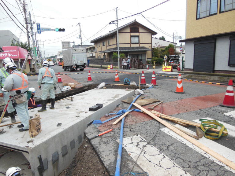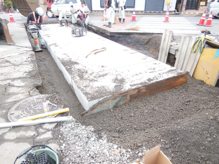 ボックスカルバート 即日復旧 基礎板 二次製品 レッカー取り 車上渡し 交差点工事