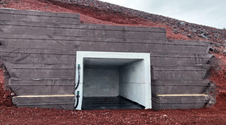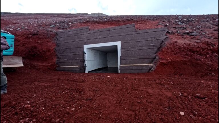 工事概要:富士山吉田口下山道8合目付近において、KCVを用いた火山避難壕を2基設置しました。キャリアダンプによる運搬と施工重機の能力を考慮し、1ブロックを1,800㎏以下にする必要があるため、頂・底版2分割、製品長600㎜の2分割ボックスカルバートとしました。 標高3,000m地点での厳しい環境条件と限られた施工期間を考えると、KCVに用いるKTジョイントの優位性が発揮できたと思います。