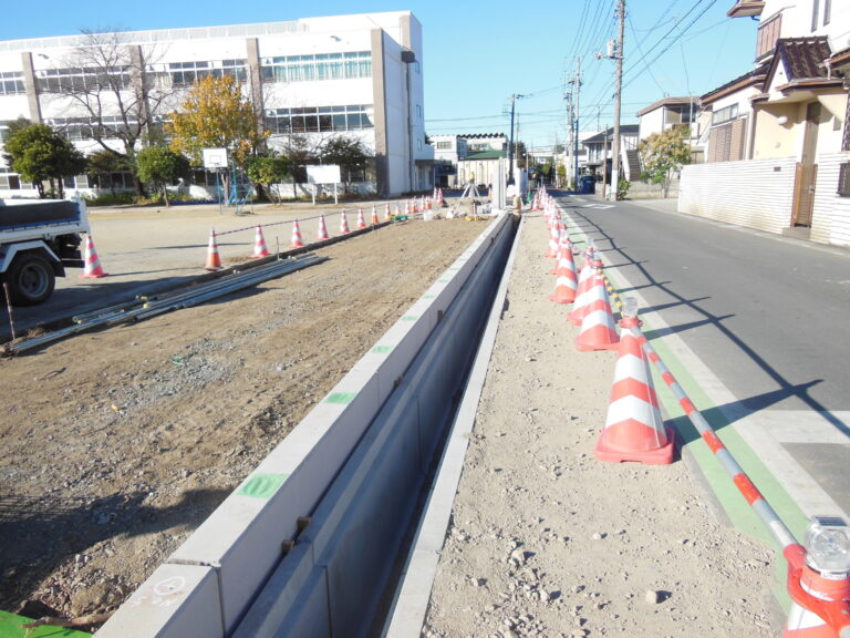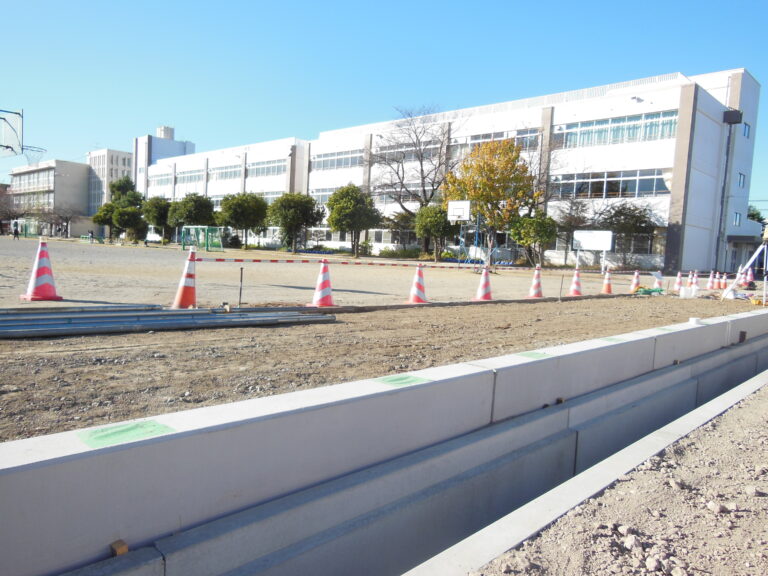 目隠しフェンス対応 学校 外構 フェンス穴付擁壁 土留め