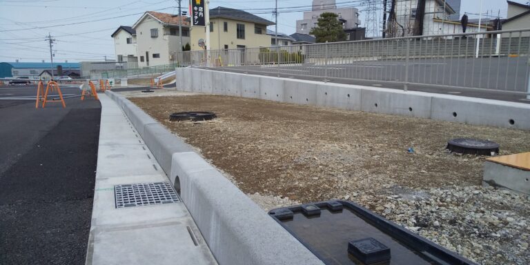工事概要:国道19号線拡幅に伴い、官民境界にKGL、FEL防草。街渠縦断管にR2-KALDを採用。
