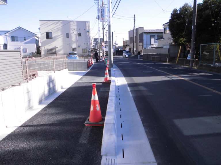 工事概要:東武野田線豊春駅からの自転車による通行者が多く、安全対策として滑り止めタイプの採用に至った。