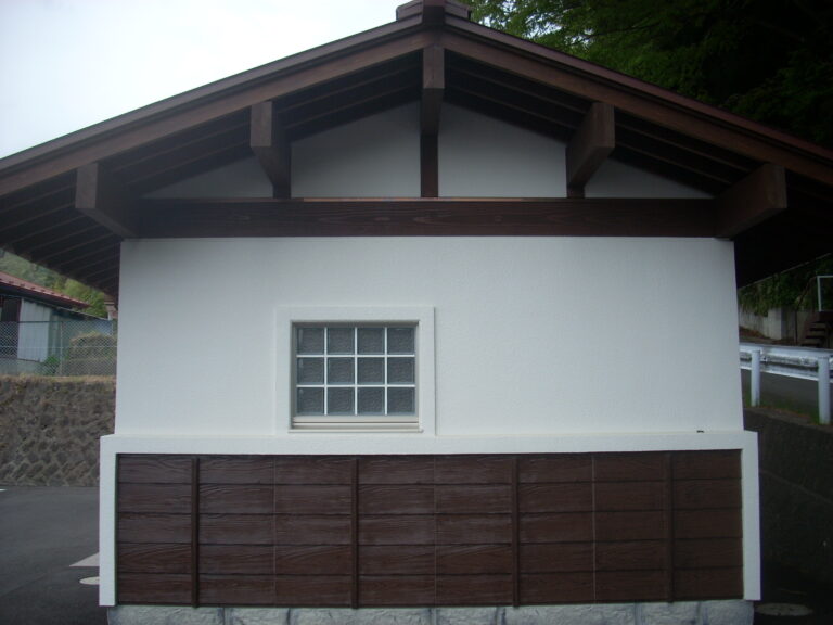 工事概要:観光客に人気の新倉山浅間公園の駐車場のトイレの外壁をPCギ木で作りました。 詳しくは→http://www.yamanashi-kankou/spot/p1_4919.htmlまで。