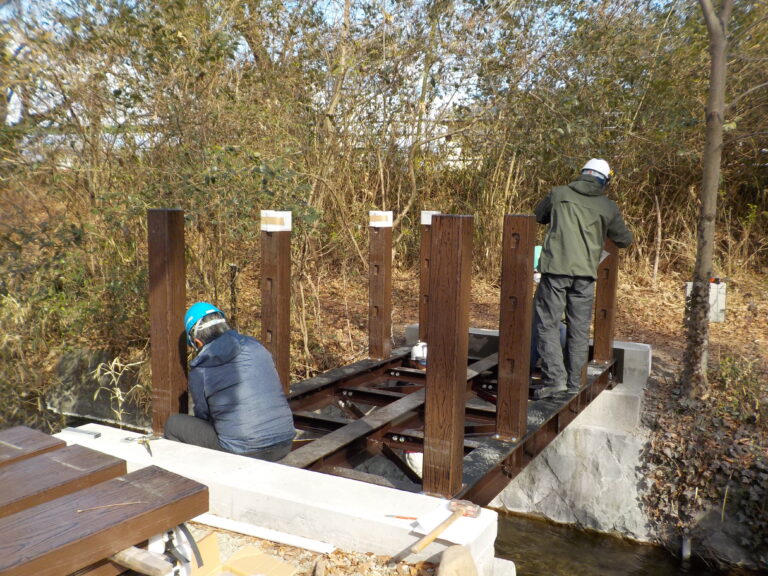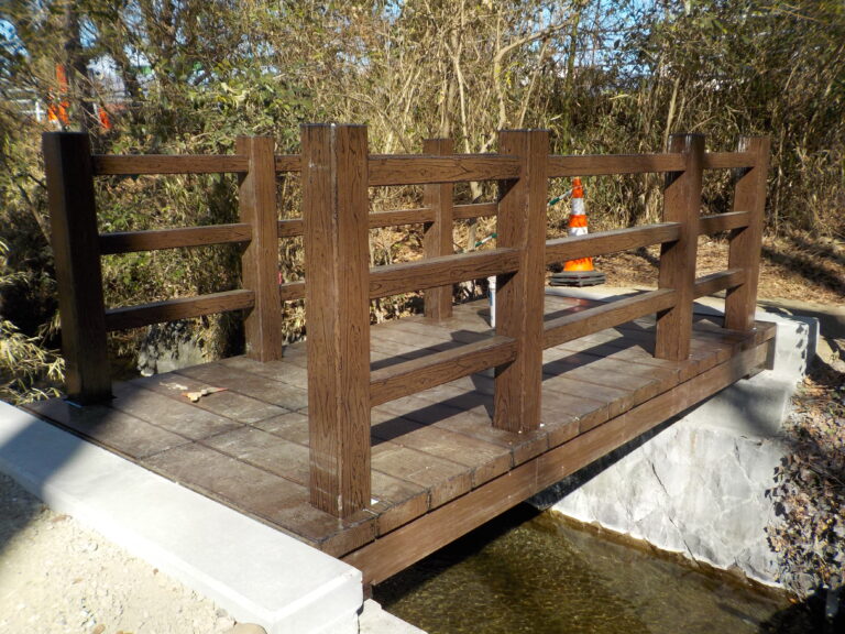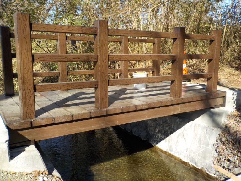 工事概要:古くなった橋をPCギ木(色目-焼杉)に致しました。PCなので丈夫で長持ち致します。色目は焼杉になります。