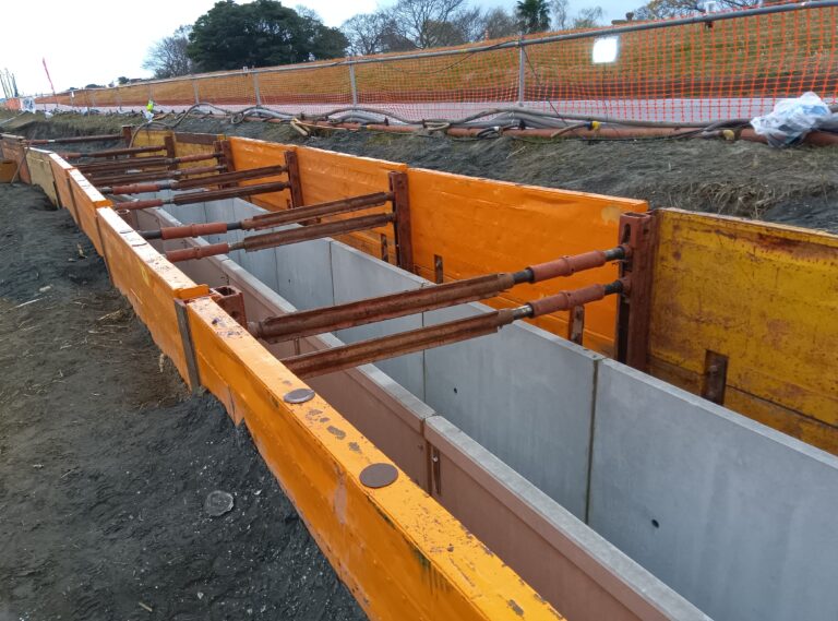 工事概要:老朽化した排水路の更新作業において、排水フリュームを施工しました。